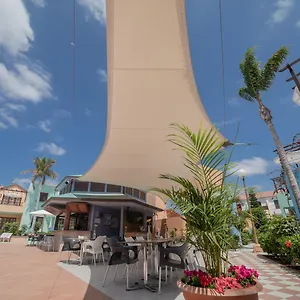 Este hotel cuenta con un bar en la piscina y el restaurante Celebration, que sirve cocina mediterránea.